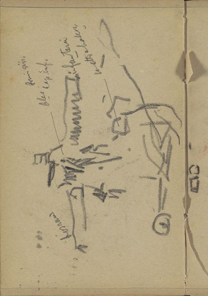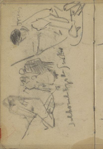 Curator: Here we have "Studieblad, mogelijk onder andere met architectuurstudies"—or, Study Sheet, Possibly with Architectural Studies Among Other Things—a pencil drawing on paper by George Hendrik Breitner, created sometime between 1887 and 1891. Editor: Hmm, my first thought is 'fleeting'. It feels like a half-remembered dream, sketched quickly before it vanished completely. Curator: Breitner was deeply invested in capturing the immediacy of urban life, especially in Amsterdam. His method involved photography as preliminary documentation, followed by drawing, often employing materials economically. The hasty pencil strokes here, that architectural… suggestion. Editor: Architectural ghost more like. It’s there and not there. It gives the sense of buildings always in flux. Did the ephemeral nature of his city inspire a quick, sketchy style? Curator: Very possibly. Also, bear in mind that drawings like these reveal his process, they expose his engagement with his subjects—his selection, editing, and translation of the world into art. Pencil on paper, of course, was cheap and accessible—suitable for an artist chronicling everyday life. Editor: Absolutely! There's also the rough quality, right? How it shows every stroke and correction? That honesty is kind of beautiful in an incomplete work. It reveals his engagement, sure. But it’s so exposed, not calculated for reception, you know? It invites participation. Like he wants us to pick up the pencil ourselves and fill in the gaps. Curator: And the Rijksmuseum is right to share it with the world as an important, engaging, albeit minor, drawing. The artist’s method is palpable and instructive here. Editor: Well, it has made me itch to wander through Amsterdam with a sketchbook. So that says something!