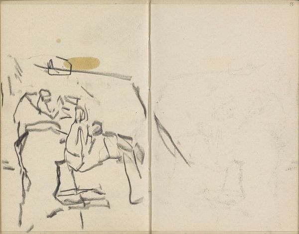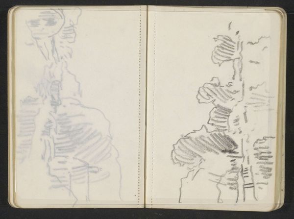 Editor: This is "Figuur op een zeilboot," or "Figure on a Sailboat," from around the 1900s, by Alexander Shilling. It looks like a page from a sketchbook, pencil and ink. It has such a fleeting, dreamlike quality. What stands out to you most about this image? Curator: The sailboat and the figure within it serve as potent symbols. Water, across cultures, signifies the unconscious, the realm of emotions and intuition. A sailboat, then, becomes a vessel navigating these inner waters. What might the journey represent, and who is the figure at its helm? Does this symbol of a vessel tie in with other forms of transportation through the subconscious mind such as with flying or travel? Editor: I hadn't thought of it like that at all, I was mainly considering the aesthetic and almost ephemeral aspect of the line-work! So, the figure *could* be symbolic...do you see a continuity between this sketch and some larger cultural narratives or mythologies around journeys? Curator: Absolutely! Consider the ancient myths of voyages—Odysseus, Jason, even Charon ferrying souls across the River Styx. These narratives are embedded in our collective unconscious, shaping how we interpret images of journeys. This quick sketch reminds me of similar concepts. Perhaps Shilling intended to capture a fleeting moment of personal reflection. It is through a network of historical associations that sketches such as this have such depth. Does seeing it that way change your initial reaction? Editor: It does! The idea of these seemingly simple lines being connected to centuries of symbolic journeys is fascinating. It’s almost like the artist tapped into something bigger than just a scene on the water. Thanks! Curator: Indeed, the beauty lies in the interconnectedness. We recognize what we know by that which came before. A fleeting glimpse that touches something deep.