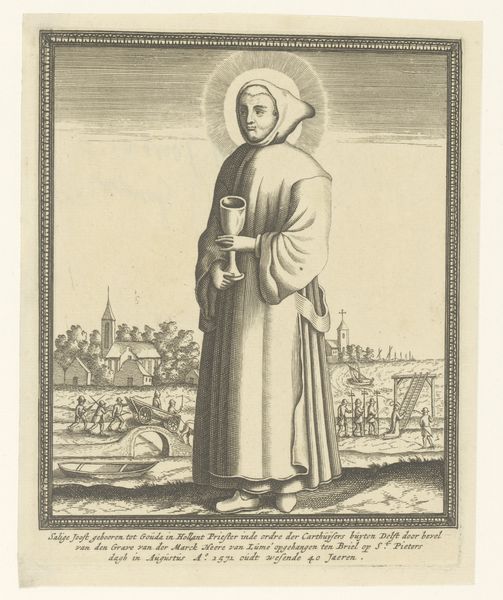 This print of Christ with orb and Holy Spirit was made by Iven Besoet in the mid-18th century. It’s an engraving, meaning the image was incised into a metal plate, likely copper. The artist would have used a tool called a burin to create these lines, and then the plate would have been inked and pressed onto paper. The material properties of metal and the printing process influenced the visual language of this work. The sharp, precise lines of the engraving give the image a sense of clarity and detail. The use of hatching and cross-hatching creates tone and depth, while the stark contrast between black ink and white paper adds to the dramatic effect. Consider the labor involved in creating such a print: the skilled hand of the engraver, the time spent meticulously carving the image into the metal plate. This stands in contrast to our contemporary digital modes of production. By understanding the materials and processes behind this print, we can appreciate the artistry and effort that went into its creation, and reflect on how the means of production shape our visual culture.