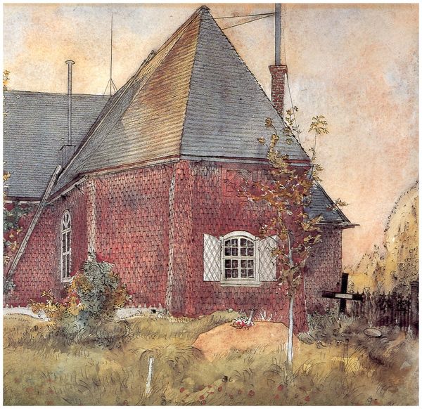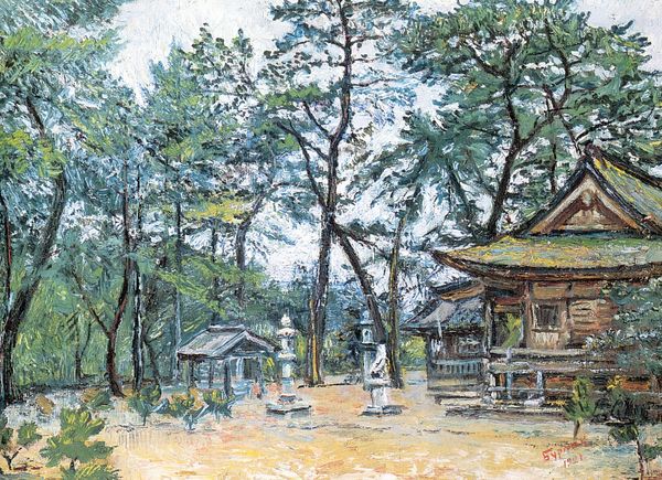Editor: Arkady Rylov’s “Red House. Rylov’s Workshop on the Banks of the Volga,” created around 1910, presents us with a vivid landscape rendered in oil. There's almost a rustic quality to the materials he depicts. How would you interpret Rylov's choice of medium and subject in this painting? Curator: I find it compelling to examine Rylov's approach to this landscape through the lens of materiality and labor. Consider the very act of applying oil paint to canvas – the physical process, the cost of the materials, the access he has to such resources. Who historically has been privileged enough to create landscape paintings and what stories do they reflect? The red house, the presumed "workshop," highlights the potential site of artistic production itself, almost in conversation with its own making. What kind of relationship do you think is established between the labor, the structure, and its representation through the oil paint? Editor: That's a fantastic point, framing the house not just as a structure, but as a site of labor and production. I wonder if the vibrant red color is intentional, perhaps to emphasize the industry and effort involved. Curator: Precisely. The pigmentation itself is a material with a specific origin and social context. What raw materials were used to get this particular red and how were those materials accessed? Who was part of its distribution and manufacture? Considering those questions gives us a deeper understanding of Rylov's work and its place in society. It’s not just a pretty picture, it is also the convergence of numerous processes! Editor: That makes me think about how the painting almost obscures the workshop. Do you think he meant to hide something, or complicate its consumption? Curator: Obscuring, or maybe framing a particular view for a particular consumer? The seemingly "natural" framing of the workshop by the trees makes me wonder what narrative Rylov constructs around artistic production and its reception. We also must keep in mind the social context of art-making at that time! Editor: I've definitely learned a new way to look at landscapes, thinking beyond just the aesthetic appeal. Thank you. Curator: My pleasure. By looking at materiality and modes of production, even a seemingly straightforward painting of a house on a river opens up to deeper layers of understanding about the complex relationship between art, labor, and society.