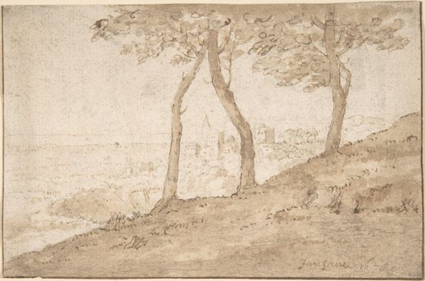 Curator: Oh, it's like a whisper of a place. Makes me want to drift away, doesn’t it? Editor: Indeed, Armando Reveron's "Playa de Macuto" from 1940 certainly possesses a dreamy quality. Reveron, as a Venezuelan artist, increasingly withdrew from the conventional art world to pursue an intensely personal vision. This watercolor beautifully exemplifies that trajectory. Curator: Watercolor. So translucent. It feels like you could almost step right into that haze. I imagine Reveron himself out there, just becoming part of the scene, fading into it, right? Editor: He essentially did just that. Reveron constructed a studio near the coast at Macuto, obsessively studying the effects of tropical light. His artistic practice became closely linked with that landscape, with some suggesting that this immersion approached a kind of self-imposed isolation. Curator: Isolation isn’t quite the right word, is it? More like communion. He's capturing something deeper than just a visual scene here, almost a feeling of the sun, the heat. Those muted colours...are they sun-bleached or am I imagining it? Editor: That's a very astute observation! Some historians believe that he deliberately toned down his palette in this period, trying to reflect what he called a state of 'whiteness' in his art, a reflection of overwhelming light which effectively washes away intense colours. Think about how Impressionists approached light and then dial it down into something more subjective and psychological. Curator: It is. A personal reality, perhaps? It makes me wonder, did other artists from Venezuela engage in these sensory perceptions? Editor: Venezuelan landscape painting, through the nineteenth and twentieth centuries, often carried with it overt nationalist agendas – grand vistas became emblems of progress and identity. Reveron resists this didactic approach, presenting nature instead through the filter of personal, even unstable, experience. This perhaps, explains his late recognition in his native country, only acknowledged towards the end of the 20th century. Curator: Well, I, for one, feel like I've truly encountered that landscape. Editor: A worthy journey indeed. A vision of landscape stripped to its essence, challenging our perception and expectation.