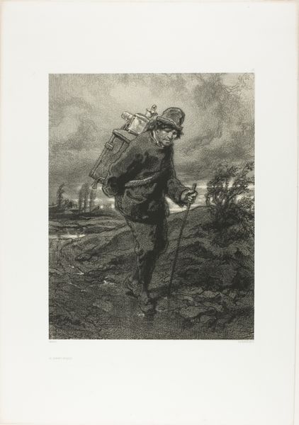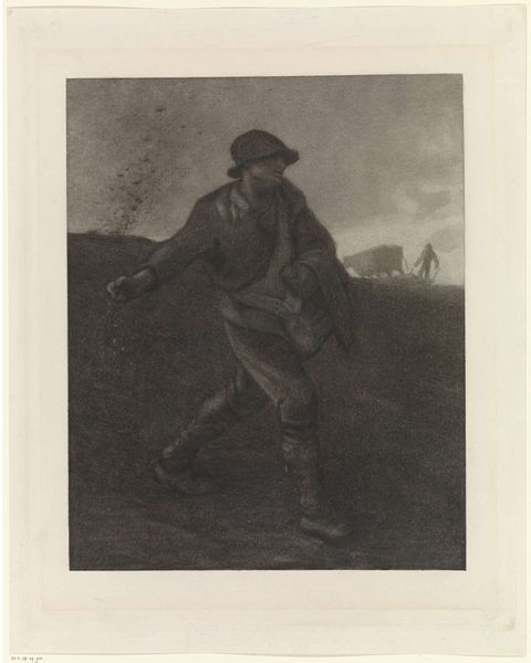 Editor: So, here we have "The Sower," a pencil drawing done by Jean-François Millet in 1851, currently residing at the Met. The figure dominates the scene, but something about the way the background is treated… It feels bleak, almost oppressive. What do you see in this piece? Curator: I see a potent statement about the social landscape of 19th-century France. Millet's choice to depict rural laborers wasn't just aesthetic; it was a political act. Before him, high art celebrated aristocracy. The art world started idealizing rural life only as the Industrial revolution was causing urbanization. Consider the time; 1848 saw revolutions across Europe. How do you think this image would be viewed differently depending on who the viewer was at that time? Editor: Hmm, a wealthy landowner might see a romanticized vision of their workforce, but a peasant might feel it was more of an exploitation? Curator: Precisely! It also challenges the hierarchy of the Salon system, which dictated whose art was deemed worthy of public consumption. Millet brings the unsung, unglamorous toil of the peasant class into the visual vocabulary. This "genre painting", depicting everyday life, elevated an overlooked subject and gave it a voice. Also consider, art at this time was used as propaganda. The pencils become tools of revolution. Does knowing this alter your initial interpretation of the bleakness you sensed? Editor: It does. The "bleakness" might be Millet reflecting that reality in his time? It’s not just an aesthetic choice, it’s a reflection of the struggle, seen by the politics of imagery. Curator: Exactly! Editor: Wow. Thanks so much for clarifying all this, now it makes so much more sense. Curator: It was my pleasure, seeing it through your eyes as well helps.