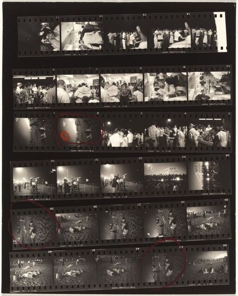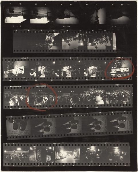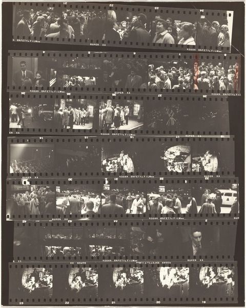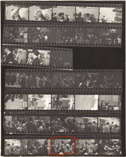 This is Robert Frank's photographic contact sheet, "Guggenheim 147," capturing Jan Müller's exhibition at the Hansa Gallery in New York City. It’s all about black and white tonality, and the way Frank uses the film strip itself as a compositional element, kind of like a painter uses a grid. The dark, grainy texture gives the image a raw, documentary feel. Notice how the sprocket holes and frame edges are visible, reminding us of the photographic process. Each frame offers a glimpse into the opening, a study in light and shadow and a sense of movement as people mingle around the art. The image encapsulates a moment in time. Frank reminds me a bit of Garry Winogrand here, both capturing the energy of the New York art world. Like a painter who layers brushstrokes, Frank layers frames. The contact sheet becomes a canvas. It’s an invitation to look closer, to see the art within the art.