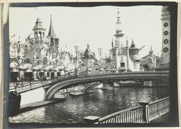 This stereoscopic photograph captures the foreign pavilions along the Seine at the 1900 World's Fair in Paris. Made through a process of dual photography, this mass-produced image speaks volumes about labor, politics, and consumption at the turn of the century. The scene depicts elaborate architectural structures, built to showcase national identity and industrial progress. The pavilions, seemingly grand and permanent, were in fact temporary constructions, built by countless laborers. The photograph itself, a product of chemical processes and mechanical reproduction, was intended for mass consumption, feeding the public’s desire for spectacle and novelty. This two-image card was a popular form of entertainment. The existence of this image highlights the contrast between the highly-crafted, bespoke architecture of the pavilions, and the industrialized means by which they were captured and disseminated. It serves as a reminder that what often appears as high art or grand design is deeply intertwined with labor and the mechanics of production, challenging traditional distinctions between fine art, craft, and industrial manufacturing.