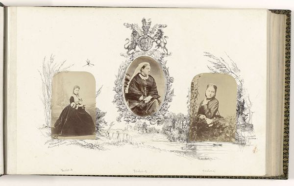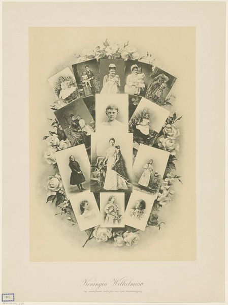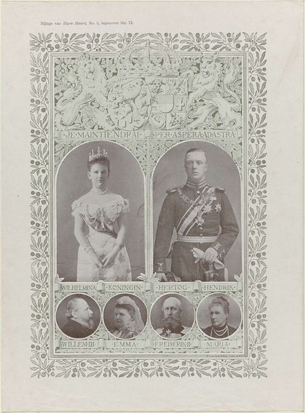 Curator: This print, dating from somewhere between 1830 and 1899, now resides in the Rijksmuseum. It’s a group portrait identified as depicting Willem II, king of the Netherlands, Anna Paulowna Romanowa, and their children. It’s attributed to an anonymous artist and produced via engraving. Editor: Ah, an oldie but goodie! It feels almost like peering through a frosted window at a royal dollhouse. There's a dreamy quality despite the very official subject matter. Curator: Indeed, and examining this artwork through an intersectional lens invites considerations around the performative aspects of royal identity. How is power visually constructed, and what societal expectations regarding gender roles are being reinforced or, potentially, subverted here? Editor: Ooh, good point! It’s the swirling baroque framing. Like the family's afloat in a cloud of lace and expectations. The serious expressions versus the overall sweetness is throwing me. Are those chubby cherubs trumpeting their arrival into high society? It's a bit much! Curator: I agree that there's a saccharine quality. The composition reflects the Romanticist tendencies toward emotional idealization. Consider also, however, that representation played a critical role in solidifying dynastic legitimacy and cultivating popular support for the monarchy during this period. The domestic ideal of the royal family becomes a powerful symbol of national stability. Editor: So, like, early royal family influencers? Building a brand through baby photos and strategically placed cherubs? Genius. Makes you wonder what the Romanows would be posting on Instagram today! But honestly, seeing all this history rendered in this medium gives it all another flavor of unreality. Curator: Precisely. It’s about unpacking the layers of meaning encoded within seemingly straightforward images, challenging assumptions about representation, and understanding how art actively participates in constructing broader socio-political narratives. Editor: And it’s a great reminder that even old royal portraits have their stories to tell. Gives you something to ponder next time you are scrolling the ‘gram. Curator: It invites, even demands, we scrutinize who is in the frame, and whose story isn't being told, really.