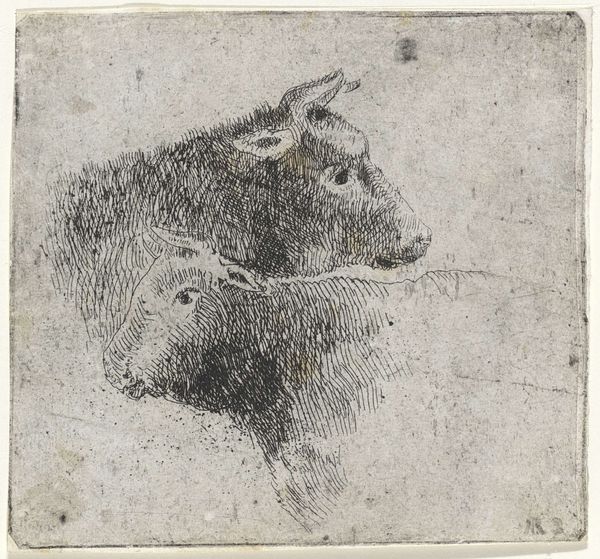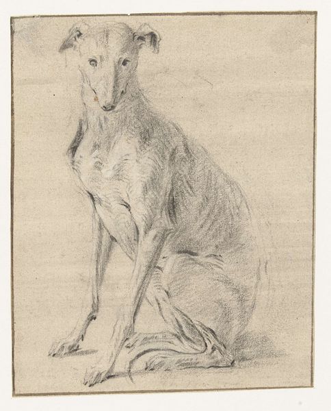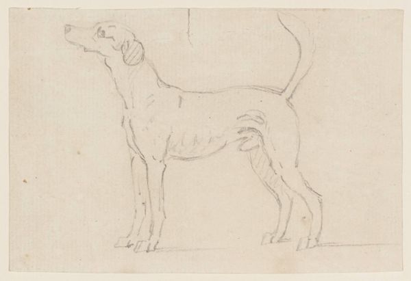 Curator: Before us is "A Standing Dog, Seen From the Side" by Frans Snijders, crafted between 1589 and 1657. This pencil drawing is currently held here at the Rijksmuseum. Editor: It's strikingly understated, isn't it? There’s an almost melancholy mood evoked by the thin lines, despite it just being a dog. I am also touched by this work and its realistic but also idealized form. Curator: Indeed. The seemingly simple subject of the dog takes on a larger resonance within the historical context. Snijders, known primarily for his depictions of still lifes and animals, often imbued his subjects with symbolic weight. Dogs, in particular, frequently appeared as emblems of loyalty, vigilance, or even aristocratic status within Baroque society. Editor: So, it’s more than just a study. Was he trying to make a statement about society through this representation? Or simply practicing form? Curator: Potentially both! It’s important to remember the culture of the time, with the Dutch Republic in its Golden Age. Dogs were often companions, and this image likely reflected a certain domestic ideal. Editor: The pose of the dog, alert and attentive, does suggest more than just companionship, I see him as a guardian. Is it reaching for this in his time as well? Perhaps the artist is capturing not just the physical presence of the animal but its inherent, symbolic qualities. Curator: It also reflects the scientific interest during this period, with detailed studies of animals becoming more common. Consider how the Baroque period prized both realism and drama, as seen with other types of paintings from that period. Snijders beautifully blends both qualities. Editor: Looking closely at the pencil work, it appears the drawing served a practical purpose—likely a preliminary study. You see where the artist returns to render shapes and re-render forms. Even unfinished, however, the artwork manages to hold significant evocative power. Curator: Absolutely, and it highlights the value of art as documentation, be it scientific or societal. This work provides insight not only into the techniques of a master but also into the cultural attitudes toward animals, domesticity, and status during the Baroque era. Editor: I am surprised and very thankful that an unfinished drawing can teach us much more about people in that time period.