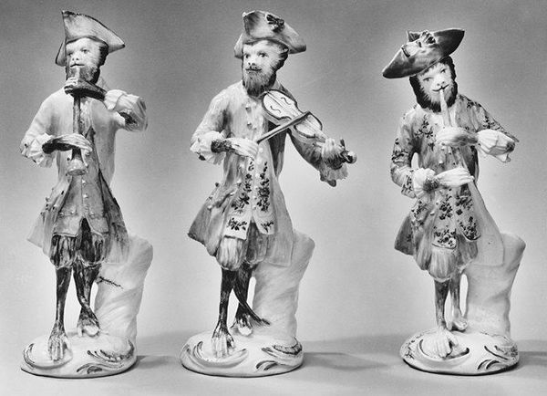 These porcelain figures were crafted by the Meissen Manufactory, capturing the essence of Commedia dell'Arte characters. Notice Beltrame, with his rakish hat and jaunty pose. He is a descendant of the boastful soldier of classical plays, a figure echoed through time in art, from ancient Roman comedies to Renaissance theater. His swagger and exaggerated gestures are not mere entertainment; they tap into deep-seated archetypes of bravado and folly. Consider how such figures recur across cultures, embodying our complex relationship with authority and the human tendency for self-deception. These figures are vessels, carrying layers of cultural memory. They allow us to explore shared anxieties and desires on a subconscious level, tapping into the emotional power of recognition. The symbols of comedy and satire are non-linear; they resurface, evolve, and take on new meanings in different historical contexts.