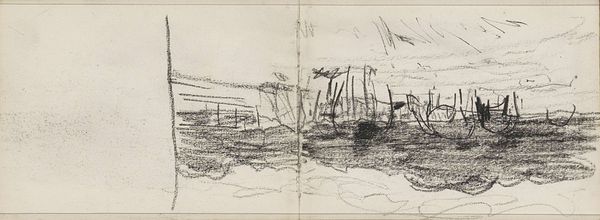 Editor: So, this is Willem Roelofs’ "Bomen aan een vaart," made sometime between 1832 and 1897. It’s a pencil and watercolor work on toned paper. It feels almost like a fleeting memory. What sort of symbolic weight do you think this type of preliminary sketch might carry? Curator: This image operates almost like an archetype; the riverbank, the sentinel trees. It speaks to something deeply embedded in our cultural understanding of landscape, doesn't it? Think about the symbolic river, the crossing, the boundary between worlds. Do you see the implications of it being a sketch? Editor: Well, it feels less ‘resolved’ I guess. More about capturing a feeling than depicting a place? Curator: Precisely. And that lack of resolution becomes significant. A complete image often aims to dictate meaning, but an unfinished sketch…it invites interpretation. It's almost primal in its form, don’t you think? As if Roelofs is unearthing an image that already exists in the collective unconscious. Does that make sense? Editor: Yes, it does. The roughness, the incompleteness...it leaves space for the viewer to project their own emotions and memories onto the scene. Curator: It acts as a mnemonic device. A visual key unlocking our own inner landscapes. What do you take away from it personally? Editor: I initially saw it as just a simple landscape study, but now I’m seeing it as something much more universal. It really makes you wonder what images are lurking in our cultural memory. Curator: Exactly. It's a dialogue between the artist, the artwork, and us –across time, mediated through shared symbols. A continuous re-remembering.