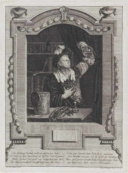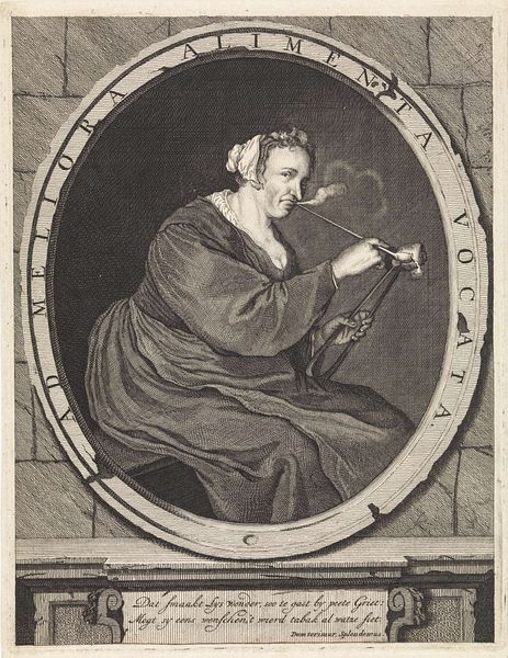 Editor: Here we have Lucas Vorsterman’s "IJdelheid (Superbia)," created sometime between 1619 and 1675. It's an intaglio print, and I find the contrast created by the engraving quite striking. What do you make of this work? Curator: Well, given its medium and implied message against vanity, it compels us to think about consumption and production in the Dutch Golden Age. Notice how the labor-intensive process of creating this engraving becomes ironic, commenting on the labor this woman might be putting into maintaining appearances. The materiality of the print – the paper, the ink – points to a growing market for such moralizing images. Editor: That’s interesting, I hadn't considered the print as a commodity itself. But why focus on vanity specifically? Curator: Consider the historical context. The rising merchant class had new access to goods and fashion. This print implicates these new displays of wealth in debates about value and virtue. What do you think this engraving says about the social perception of women during the baroque period? Editor: It seems to portray an older woman engaging in the rituals of beauty typically associated with younger women. Perhaps it’s highlighting how vanity transcends age. But you’re saying it's also connected to a broader context of commerce? Curator: Precisely! Think about who would buy such an image. Is it simply a cautionary tale, or also a reflection of anxieties among certain classes about wealth? It complicates what we might initially see as straightforward. Editor: So it challenges simple ideas about “high art” versus mere craft through the social messages the art contains. Thanks, I hadn't considered how the material conditions shaped the image's message. Curator: Precisely! Paying close attention to materials and production helps to see complex societal dialogues unfold.