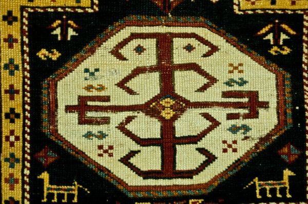 This Klagetoh type rug was created by a Navajo (Diné) artist, and it's a real testament to the power of process in art making. The palette here is so interesting – earthy neutrals punctuated by these hits of red. The design feels both ancient and modern, abstract but also full of meaning. I’m thinking about how the weaver’s hands moved, knot by knot, building up this intricate pattern. The central motif is a real focal point, almost like a sun or a star, with these radiating forms that feel so balanced. And then the border, with those zig-zagging lines, is like a frame within a frame, containing all that energy. Thinking about other artists who played with similar ideas of geometry and pattern, I can’t help but think of Agnes Martin. But where Martin's work is all about quiet Minimalism, this rug is bursting with life and story. Ultimately, it reminds me that art is always a conversation, a weaving together of different voices and traditions.