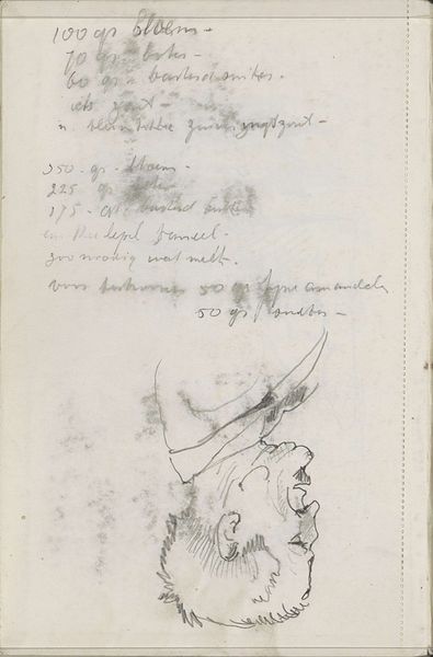 Curator: First impressions, what does this preliminary drawing evoke in you? Editor: A ghost of a person. Faint, like a half-remembered dream, yet present enough to be arresting. There’s a softness to the graphite, almost a sigh. Curator: It's currently held at the Rijksmuseum. The title translates to “Head and lips of an African man.” Though undated, this work in pencil is placed between 1916 and 1945. We know little else about the artist or sitter. Editor: So much unknown then, almost anonymous. That scribbled text above the figure—the artistic process in flight perhaps? Curator: Possibly notes for later use, preliminary thoughts related to color or composition... or something else. The act of portraying a face is often linked to power. Consider who had the means and social power to create portraits of whom, during that period. What biases might shape such work, especially ethnographic portrayals? Editor: The soft, unfinished quality fights against that idea of "power" a bit, don’t you think? It feels intimate, a stolen moment, almost… vulnerable. Despite the time passed, I feel a pull, a question in the lines themselves. Curator: Indeed, art and its impact often resists simple categorisation. Its social impact is nuanced, complicated. We have to question the gaze inherent in these representations and consider historical context. This period coincides with intense debates about colonialism. The portrayal could participate, or indeed subtly protest these viewpoints. Editor: I think I get it, you are not saying this portrait IS something, rather suggesting the way it exists in society. As in the picture has something to "do". Not merely something to "be". Curator: Exactly. Art functions. Even through these subtle traces on paper, dialogues continue and we reimagine art's place in the social narrative. Editor: Very interesting! Thank you for providing these perspectives.