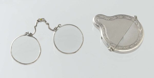Curator: We are looking at "Scharnierbril van Willem Credo," which roughly translates to Willem Credo’s Hinge Spectacles. It is believed to have been made before 1733, by an unknown artist. These miniature glasses are crafted from silver, with metal and drawing techniques utilized in their creation. Editor: My first impression is that these are incredibly delicate, almost ethereal. The silver frame is so finely wrought; it’s hard to believe they were actually functional. There’s a strange sense of vulnerability to them. Curator: Precisely! Considering the era, these spectacles were likely a luxury item, signifying status and intellectual prowess. The materiality speaks to access to specific silver workshops and craftspeople. Looking at them through a modern lens, the craftsmanship itself elevates a simple tool to an art form, blurring lines between craft and high art, challenging what constitutes as art, in that moment of creation. Editor: Absolutely. It’s interesting to think about the labor involved in crafting such a piece. The meticulous work of shaping the silver, polishing the lenses. The skill set requires dedication, and speaks volumes of the material conditions surrounding the maker, and the wearer, in that era. One wonders about the artisan, were they anonymous out of force, as women would be at that moment, or of freedom of expression? Curator: That’s a key question, especially considering how societal norms determined who had access to literacy, education, and the privilege of needing corrective eyewear. The very act of possessing these spectacles likely had deep connotations regarding identity, education, gender, and class. Perhaps also consider the fact of it being an artist making it versus a manufacturer. Editor: I agree, this seemingly small, almost insignificant, artifact becomes quite powerful once we start to unravel its material history and its broader cultural implications. Curator: In the end, it invites a contemplation on how we perceive functionality, luxury, and the social meanings we imbue within everyday objects through the intersection of time, gender, status and use. Editor: I see now the delicate structure contains stories, revealing the intricate dance between labor, consumption, and the pursuit of seeing—and being seen, differently.