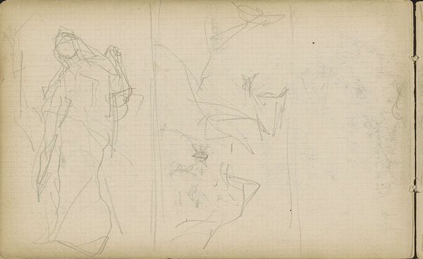 This is a drawing titled "Twee figuren," or "Two Figures," by Matthijs Maris. It's difficult to date precisely. Maris was a Dutch painter who lived from 1839 to 1917. The figures are sketched lightly with pencil, and they seem to float on the page in a dream-like state. Maris worked during a time when the art world was rapidly changing. Traditional art institutions like the academy were losing their grip on what was considered acceptable art. Many artists, like Maris, were experimenting with new styles and subjects. Holland was undergoing significant social changes in this period, and artists began to reflect on the changing society. We can research the social and institutional context that led to this changing attitude in artistic production. Maris’s work, in particular, reflects the growing interest in interiority and psychology that was becoming popular at the time.