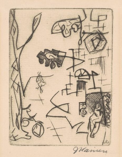 Curator: We’re looking at John Singer Sargent’s “Study of Flowers and Lanterns, for "Carnation, Lily, Lily, Rose".” It’s a pencil sketch, a preparatory work for his famous painting, held here at the Harvard Art Museums. Editor: Oh, it's wonderfully ghostly. The lanterns float like pale moons among these barely-there flora. I get a distinct feeling of a memory fading, or a dreamscape. Curator: It’s fascinating to see Sargent's process laid bare, isn’t it? These lines, so tentative, explore the composition and lighting that would define the final artwork. Editor: Absolutely. The sparseness emphasizes the fleeting nature of light and shadow, which is what the final painting so brilliantly captures. You can almost feel him searching for the right balance. Curator: Sargent uses a deceptively simple technique to indicate form and depth, really focusing on the play of light on the flowers and the lanterns. It looks like he was experimenting with how the lanterns would hang, the arrangement of the blossoms, maybe even how the light would be diffused. Editor: It's incredible how much emotion he evokes with so little. A master at work, even in a sketch. Curator: Indeed. It gives us a glimpse into the mind of an artist, and how a masterpiece begins with exploration and experimentation. Editor: A whisper of beauty, captured before it fully bloomed.