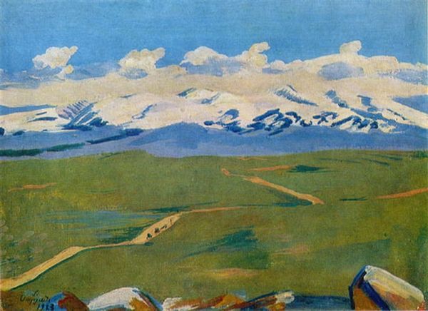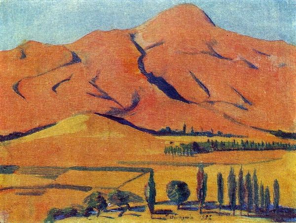 Martiros Sarian made this painting of Kara-Dag Mountain in 1922, using oil on canvas. Look at how Sarian uses color to create form. See how the light, warm colors define the planes of the mountain, while the cool shadows suggest depth? For me, that’s where the magic happens, right there in the interplay of color and form, it’s about the process, that negotiation. The paint is applied in fairly thin layers, allowing the texture of the canvas to peek through, which gives the whole thing a kind of dry, sun-baked feel. There’s a beautiful passage in the foreground, these almost cartoonish, blobby, green shrubs, which are offset against the warm, brownish tones of the field. I particularly love how Sarian suggests form with these simple, bold strokes, creating a sense of volume and depth without getting too fussy or detailed. It puts me in mind of Milton Avery, another painter who could do so much with so little, boiling things down to their essence. Ultimately, it’s about how we see and how we interpret what we see, isn’t it? And Sarian invites us to see the world through his eyes, in all its vibrant, sun-drenched beauty.