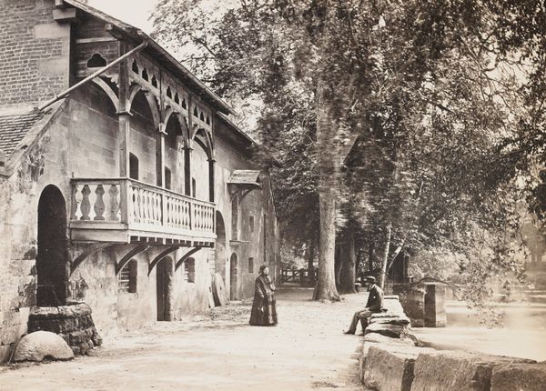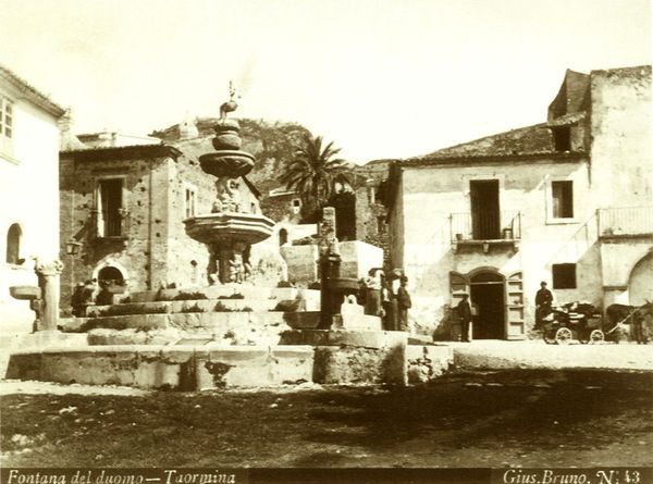 Editor: So, this photograph is called *The Piazza*, and it's an early photograph from between the 19th and 20th century, made by Alexander Keighley. The scene seems like such an ordinary street scene, with kids playing, but there’s also a beautiful stillness to it. How do you interpret this work? Curator: Looking at this photograph, the immediate resonance for me lies in its composition of children amidst ancient architecture and landscape. Think of the *piazza* itself, historically a public square used as meeting places; what is the psychological importance of using water to purify spaces such as a public square in Italy? Do the children even know they are standing on such symbolically rich and important land? Editor: The way you describe it really gives me another layer of meaning in its ordinary figures against their historical environment. So, the kids are standing at this fountain, is this significant at all? Curator: Fountains have symbolized sources of life and renewal across cultures. Even on a local scale, they have traditionally served as central points for community gathering and cleansing. And so, to place young boys playing around such a water fixture brings out questions of memory: What did children represent in the cultural imaginary of the past and now? This connection across time allows for viewers like ourselves to understand what persists and transforms over time and generations. Editor: I never really would have thought to go this deeply, about how children were seen or the purpose of a town square back then. I’m also struck by how this seemingly simple image contains so many layers. Curator: Precisely! Images like these function as time capsules, allowing us a peek into not just a physical setting but into the cultural values imbued within such spaces and forms. And perhaps prompts a recognition about today, now.