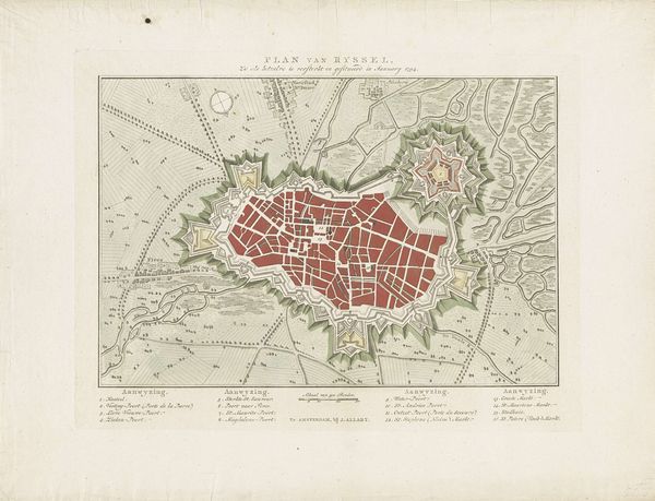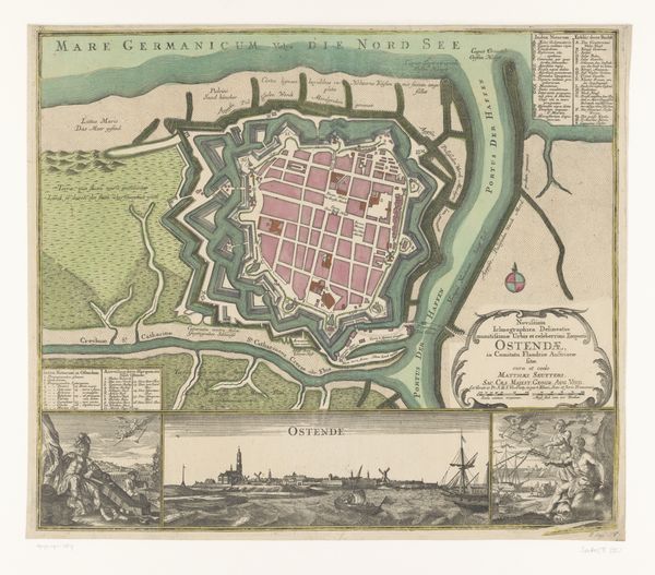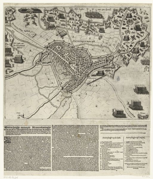Curator: We are looking at "Beleg van Douai, 1710," a print currently housed at the Rijksmuseum, created anonymously. What strikes you first? Editor: The detail! It's a formal birds-eye view of Douai during a siege, meticulously rendered as if capturing a tense but gorgeous moment in a meticulously choreographed war ballet. I am immediately drawn to its precision but also sensing the intense energy held back, it is mesmerizing and terrifying at once. Curator: As an engraving from 1710, it's part of a larger printmaking tradition of visualizing conflict and power. This wasn't just art; it was information, propaganda, a carefully constructed narrative etched onto a copper plate and multiplied. Think about the engraver, translating what was, perhaps, once sketched by an officer into this highly formal image... Editor: And the materiality of it all! Copper, acid, ink… all manipulated to portray military dominance and urban planning. It's like a map, a political statement, and a commodity all rolled into one. You imagine workshops full of artisans producing these, fueled by patronage and the demand for representations of conquest. There is intense collaboration needed in all steps. Curator: Indeed. I keep wondering about the human element removed from this otherwise detailed visual. This depiction leaves very little space for a more intimate narrative. Yet I feel such sense of tension here... This rendering of Douai is a perfect example of how to convey emotional narrative without human characters. It invites speculation on the realities obscured by such orderly presentations of history. Editor: It's the difference between the story and the STORY. What does the siege *feel* like? This piece, while incredibly informative and, dare I say beautiful, it gives us the story that favors the powerful. So I guess it prompts us to look beyond and dig up alternative narratives that exist outside these controlled depictions. Curator: Absolutely. It's a reminder that even the most precise representations are constructs, laden with choices, omissions, and a very specific point of view, isn't it? Editor: Exactly. Thinking about this piece has reframed my views. It allows me to ponder on all material and emotional implications of rendering even simplest accounts of conflict.