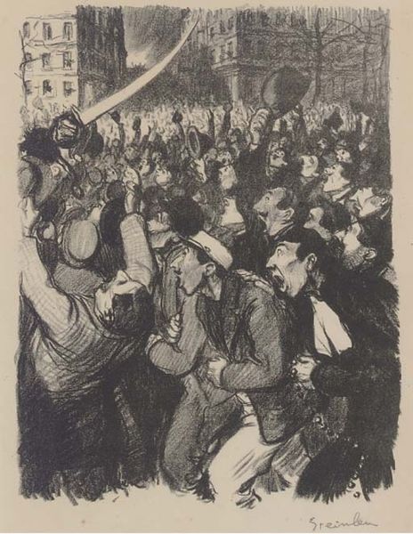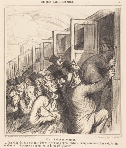This lithograph, A la porte Saint-Martin, was created by Honoré Daumier in nineteenth-century France, a time of rapid social and political change. Daumier was known for his satirical commentary on Parisian life and society. Here, we see a crowd gathered outside the Saint-Martin gate, likely watching a street performer or some other form of public entertainment. Daumier uses caricature to highlight the diverse social classes present, emphasizing their shared experience as spectators. The image is not just a snapshot of a moment, but also a commentary on the role of public spectacle in shaping social bonds. Daumier's work reflects the tension between traditional hierarchies and emerging democratic ideals. To truly understand Daumier, one must delve into the archives of the French press, exploring the political cartoons and social commentaries that shaped public discourse. Art becomes meaningful when we see it as part of the broader social and institutional context.