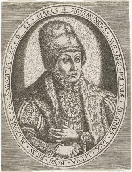 Curator: We are looking at Jan Matejko's "Jan Olbracht," created in 1891. The artwork, executed in graphite and charcoal, is a striking portrait drawing. Editor: It has such an intense, almost brooding presence. The texture achieved with the charcoal and graphite gives the impression of fur, depth, and even a hint of melancholy. Curator: Indeed, Matejko’s choice of medium speaks volumes. The use of graphite and charcoal allows for a range of tones, mirroring the era of significant industrial developments that provided accessibility and scalability of these materials as important social records. His skillful handling conveys a sense of raw immediacy while reflecting on historical and contemporary themes. Editor: Consider the figure’s pose: one hand is visible with his thumb resting on what is clearly the handle of his sword. It creates a visual tension with the figure and his stance as a protector, one not willing to surrender. The hatching and cross-hatching generate an intricate play of light and shadow which add dimension to the textures and overall composition of the portrait. Curator: From a historical context, the sword acts as a symbol of authority and power during Olbracht's reign as King of Poland. We can draw interesting links between the symbolic value of that piece of metalwork in the hand and broader networks of production, trade, and consumption of prestige objects throughout the Polish Renaissance. The clothing also gives clues about class, labor, and position. Editor: It’s fascinating how Matejko guides our eye. I keep returning to Olbracht’s gaze –direct, engaging and rather penetrating. Curator: The materiality combined with representation creates tension here; through line and shading the artist makes a statement about national identity by connecting history to the social and economic conditions of his time. Editor: And it is precisely within the lines, in the gradations of tone, that we begin to discern so much character of Matejko's historical representation. A remarkable dialogue between form and history. Curator: An exchange through the hand of the artist who masterfully employs tools to not only form likeness but reveal broader societal dimensions. Editor: Quite right.