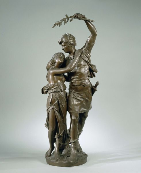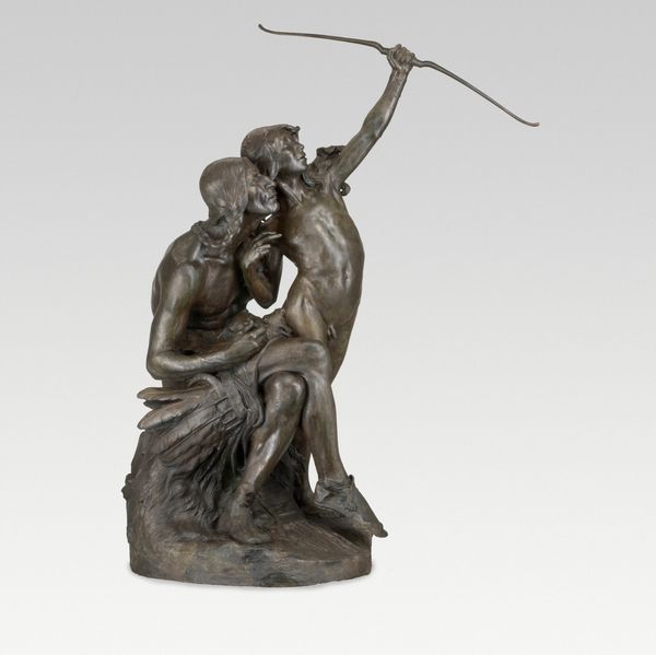 Charles Cumberworth created this bronze sculpture entitled 'The Indian Huntress' sometime in the mid-19th century. This statue participates in the European romanticization of the "noble savage," a popular trope in the 18th and 19th centuries. It depicts a Native American woman carrying a child on her back, frozen in a pose that idealizes her strength and supposed connection to nature. It's interesting to consider how such images contributed to the construction of racial stereotypes and the justification of colonial expansion. By examining period literature, political documents, and ethnographic studies, we can analyze the intentions behind this artwork. It is crucial to examine the complex power dynamics at play during the era, and the influence of artistic institutions. Such research reveals the ways in which art both reflects and perpetuates the social and political structures of its time.
