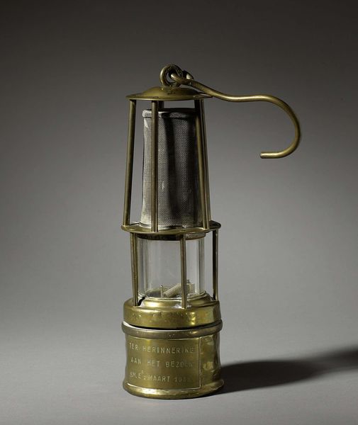 This is an industrial object called ‘Lubricator’ by Rijkswerf Amsterdam. It displays a compelling study in form and materiality. The structure itself, with its brass ovoid container atop a wooden base, presents a contrast between the smooth, reflective curves and the solid, matte rectangle. The piece appears to question conventional notions of artistic creation through its industrial origins. Its form, driven by function, echoes the modernist ethos where design follows purpose. We can consider this object through the lens of structuralism, recognizing how it operates within a system of signs and functions in a network of industrial production. The 'Lubricator' prompts reflection on how objects of utility can transcend their original function to become artifacts worthy of aesthetic consideration. It asks us to reconsider the arbitrary divide between art and industrial design. The object's appeal lies not just in its practical use, but also in its capacity to elicit contemplation on the nature of production, form, and the values we ascribe to objects.