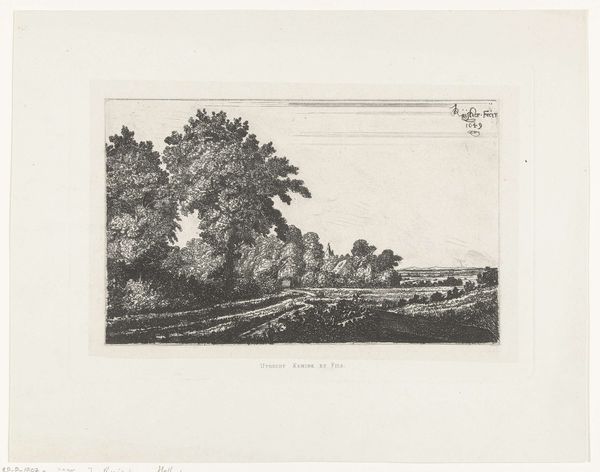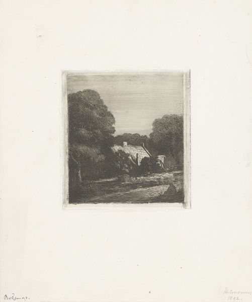 Editor: So, here we have "Landweg bij Hilversum," a pencil drawing from 1892 by Barthold Willem Floris van Riemsdijk. It's a pretty somber landscape; I am drawn to the artist's hand using different techniques within a singular art piece. What do you see in this piece, particularly given its historical context? Curator: This pencil drawing offers a glimpse into the changing landscape outside of major cities during the late 19th century. What I find compelling is how Van Riemsdijk, working at the Rijksmuseum himself, captured this scene not as a picturesque idyll, but with a certain understated realism. Note how the road dominates the composition, hinting at the increasing accessibility and perhaps even exploitation of rural areas. Do you think this realism suggests a commentary on urbanization? Editor: I hadn’t considered that urbanization could be playing a role here, but that's a really interesting point. The road *is* quite prominent. So, it is a rural area being approached rather aggressively by society, if I understand you correctly? Curator: Exactly. Think about the politics of imagery at the time. Artists were increasingly depicting everyday life, but their choices—what to include, what to emphasize—often reflected broader social attitudes. The slightly gloomy atmosphere and focus on the road's encroachment may suggest a subtle critique of modernization's impact on traditional rural life. Editor: That makes so much sense! I was just seeing a sad landscape, but I can now see an historical connection where rural settings can become social commentary on broader culture. Curator: Right. The art captures a time and asks a historical and maybe social question! Editor: This gives me a richer context for appreciating the choices van Riemsdijk made. I had not even begun to explore beyond a pretty rendering of a country scene. Curator: Exactly. History offers the tools.