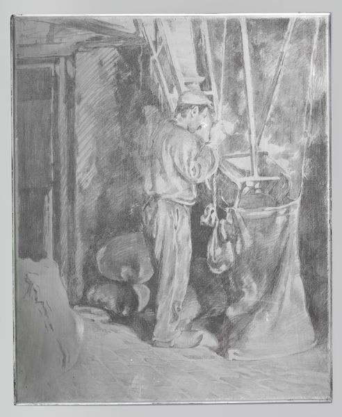 Edwin Austin Abbey made this ‘Sketch for Nighttime Rendezvous’ with ink and grey wash, and it's all about atmosphere, right? It’s like a memory, or a dream, loose and suggestive. I love how Abbey uses the wash. It’s so fluid, like he’s letting the scene emerge from the shadows. Look at the way the light catches the figure on the steps, lifting his white shirt out of the darkness. There’s a real sense of drama. The man is lifting his hat and it looks like he is making a promise he may not be able to keep. The whole thing feels kind of theatrical. Abbey was an illustrator and he had a knack for storytelling. I'm thinking of other illustrators like Aubrey Beardsley. What connects these artists? It's that feeling that something is not quite resolved. It's this open-endedness that I think makes a work special.