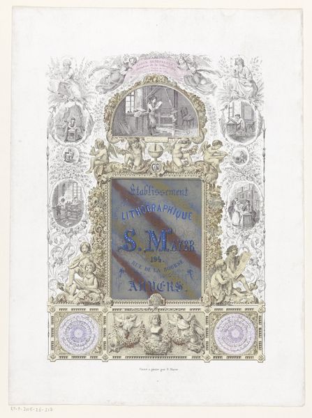 Pierre Vande Steene, a printer in Ghent, created this calling card, using an unknown medium. The card exemplifies the late 19th-century commercial aesthetic, embedding the name and trade within a visual language that spoke to status and taste. Notice the cherubs and elaborate ornamentation—these are not just decorative. They link the printer's services to a longer, more valued artistic tradition. The depiction of Ghent also roots Vande Steene's business within the local community, appealing to civic pride. Ghent was then a bustling industrial city in Belgium, experiencing rapid social and economic change. A business card like this wasn't just informational, it signaled an alignment with progress. To fully understand this card, we'd need to delve into archives of printing history, exploring the conventions and aspirations of the time. The visual style tells us much about the society and institutions in which Vande Steene operated.