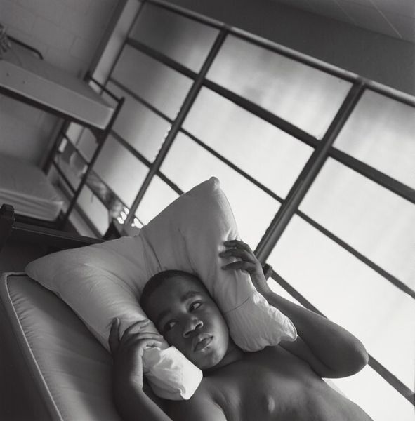 Betsy Karel made this photograph, in Boston, of a scene in a shelter, sometime in the recent past. The image is rendered in shades of grey, a tonal study where textures and patterns emerge from the shadows. This approach feels connected to the history of photography, and to the way a document can also be a work of artistic interpretation. The blankets have a real presence here, each crease and fold described with such careful attention to light and shade. You can almost feel the coarse wool against your skin. And look at the way the checked curtain in the background creates this dizzying, disorienting pattern, that speaks to the lack of privacy, and personal space. The contrast in the photograph is subtle but strong. This image reminds me a little of the work of Dorothea Lange. Both photographers share an interest in capturing the everyday lives of people who are often overlooked. Ultimately, what connects these artists, is that their art offers a powerful and intimate lens through which to see and experience the world.