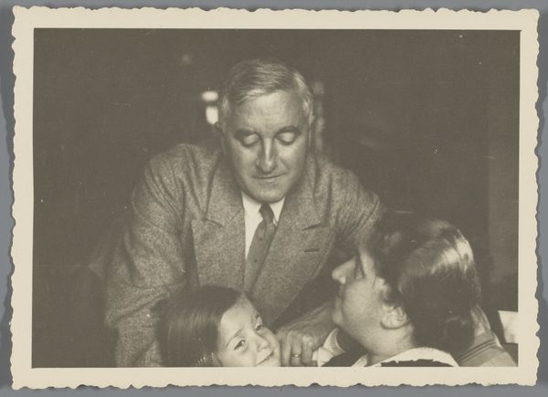 This reproduction of a photograph by Willem Witsen captures a tender moment between a man and a child. The protective gesture of the man’s arm around the child evokes a sense of security and connection. This image calls to mind the long tradition of depicting familial bonds, echoing the iconography of the Madonna and Child, where Mary’s embrace signifies protection and love. While devoid of overt religious symbols, the photograph resonates with the same archetypal emotions. Think of how, across cultures, the act of holding a child close is universally understood as a gesture of care. Yet, the photograph also subtly reveals the complexities of memory. The anonymous photographer captures not just a physical likeness, but a moment pregnant with unspoken narratives, reflecting our own recollections. The protective embrace, like a recurring dream, echoes through time, reminding us of the enduring power of familial bonds. In this image, we witness the cyclical return of human emotions, forever imprinted in our collective consciousness.