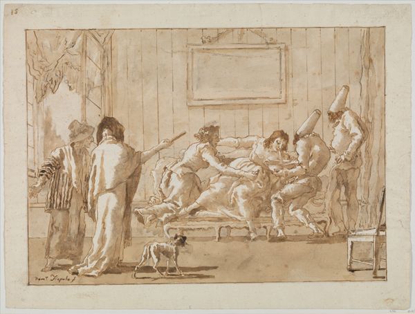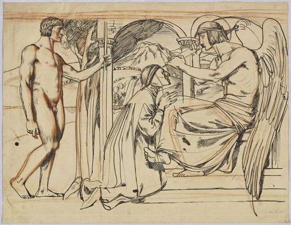 This pen and brown ink drawing, Damon and Pythias, was made by Guercino, an Italian Baroque draughtsman, sometime between 1591 and 1666. The sepia tones evoke a sense of antiquity, drawing us into a moment of dramatic tension. Guercino masterfully employs line to define the contours and drapery of his figures, creating a dynamic interplay of light and shadow. The composition unfolds as a series of gestures and glances that underscore the narrative's emotional complexity. The foregrounded figure, kneeling, is framed by the firm hand of his friend ready to take his life. Here, the weight of human drama meets the stark formality of the architectural setting. This drawing resonates with structuralist principles. Through Guercino's calculated use of line and form, the drawing transcends its immediate subject, inviting us to consider the broader themes of sacrifice, loyalty, and power. The artwork becomes a stage where classical motifs are reconfigured through the artist's hand, creating a space for perpetual dialogue and interpretation.
