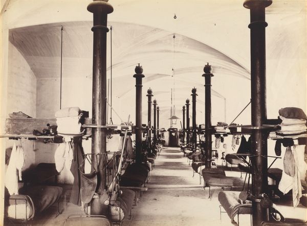 Dirk van Lokhorst’s lithograph, “Interior of the Auxiliary Mint Building on the Wittevrouwensingel in Utrecht,” presents a space dominated by linear perspective and mechanical forms. The eye is drawn deep into the composition, along rows of identical machines, each meticulously rendered with attention to their circular and angular components. The subdued palette and detailed execution lend a sense of order, yet the complex network of belts and wheels hint at an underlying dynamism. One might consider how Lokhorst uses the visual language of industrialization to comment on themes of repetition, uniformity, and the changing human relationship to labor. The lithograph’s composition and perspective can be interpreted within a framework of structuralism, where the arrangement of elements—machines, beams, windows—creates a system mirroring the industrialized processes it depicts. Ultimately, the print is a study in how the formal qualities of art can reflect and engage with broader cultural and philosophical shifts.