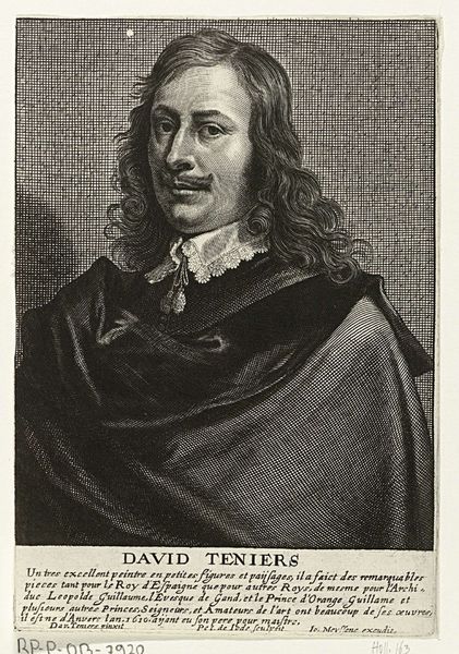 Editor: Here we have Pieter de Bailliu’s portrait of Jan Bylert, made sometime between 1623 and 1661. It's an engraving, and there’s something about the starkness of the lines that feels very direct. What draws your attention when you look at this piece? Curator: My initial response lies in the intricate interplay of lines that define the subject’s form and character. Consider how the density and direction of the etched lines meticulously sculpt the contours of Bylert’s face, creating a palpable sense of volume and texture. The folds of the drapery, achieved through subtle variations in line weight, reveal a masterful understanding of light and shadow. Do you notice how the engraver uses varied densities of hatching to simulate tonal gradations, an effective yet economical technique? Editor: Yes, now that you point it out, the contrast between the almost blank background and the detailed face is striking. Does the inscription at the bottom change your view on it? Curator: The inscription serves less as an integral component of the artistic composition, and more as a piece of paratext, no? It furnishes supplementary details. Instead, look closely at the composition: it's quite conventional for the period. The subject gazes out, engaging the viewer directly, but observe how the subtle asymmetry in the face, rendered by De Bailliu's skilled hand, adds a layer of psychological depth, differentiating it from a purely formulaic representation. Editor: That’s a great observation. I was so focused on the historical context I didn’t notice those finer details in the face. Curator: Precisely. By examining the formal elements, we gain insights beyond biographical or historical context. Editor: I learned a lot about looking at a work from an artistic standpoint. Curator: And I hope I helped provide another tool with which to see and understand.