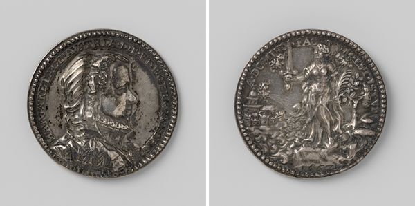 Curator: Here we have a striking metalwork from 1568 by Jacques Jonghelinck, titled "Viglius ab Aytta Zuichemus, voorzitter van de Geheime Raad te Brussel, proost van St. Bavo en kanselier van de orde van het Gulden Vlies," quite the mouthful! Editor: It is. And, you know, just seeing the two faces of the medallion – the imposing profile and the… what is that on the reverse? It feels…serious, official. I wouldn't want to cross this guy. Curator: That air of authority is certainly the intent. Viglius was a key player in the Habsburg Netherlands, and Jonghelinck, as a celebrated medalist, was tasked with immortalizing his stature. We see him, not as a man, but as a representative of powerful institutions. Editor: Immortalizing...right. So, a PR exercise carved in metal, pretty much. Though I have to say, there is an intricate beauty here, in his clothes, the lettering around the edges. Makes you wonder who this object was actually meant for. Was it, you know, just his paperweight? Curator: Medallions like these served various purposes. They could be gifts to demonstrate allegiance, diplomatic tools, or, indeed, personal keepsakes to remind the subject of their importance and status within a strict hierarchical social order. Editor: Status... so, almost like a Renaissance status update. Instagram for the elite, in a way? Though imagine getting this as a party favour at one of Viglius’ do’s? It'd be something you'd keep, perhaps in a safe place. Curator: Precisely. Now, notice the depiction on the reverse side. The imagery of the elaborate table and vessel references Viglius's roles in governance, perhaps an allegory relating to justice, with allusions to piety given his clerical duties. Editor: An allegory that’s as complex as his job title! So much formality, though I admit, there is a sort of power to that stern, determined look of his on one side. Almost makes me wish I knew what kind of trouble he was stirring up back then. Curator: Knowing how history unfolded, quite a lot, I suspect. It certainly reflects the tensions brewing in the Netherlands at the time and, with such objects, how power was represented and disseminated. Editor: That makes the medal an enduring symbol, beyond just commemorating some high-powered functionary. Sort of a miniature time capsule, isn’t it? Fascinating!