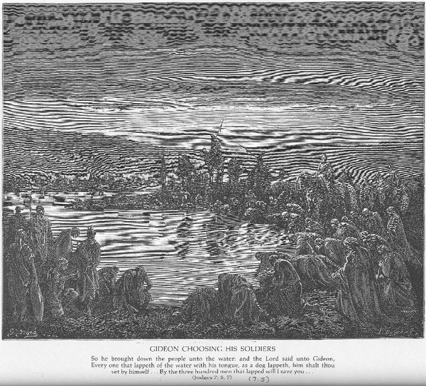 Curator: This engraving is titled "The Death of Gideon's Sons," and it was created by the celebrated French artist Gustave Doré. He’s perhaps best known for his dramatic and detailed illustrations of literary classics. Editor: Oof, what a grim spectacle. The composition plunges us right into the aftermath of, well, a massacre. It feels staged, like an Old Testament drama caught at its bloodiest climax, but a kind of awful sublime feeling washes over me. Curator: Doré uses a highly dramatic Romantic style. We can almost feel the artist emphasizing the macabre nature of the scene, and, the terrible fulfillment of biblical destiny. The slaughter of Gideon's seventy sons is recounted in the Book of Judges. The act becomes a pivotal, and cautionary, historical moment. Editor: And the perspective! The bodies are heaped in the foreground, blocking any sense of escape or peace. And yet, beyond them, that procession carrying out the deed retreats into the distance, indifferent, shadowy. It's a bleak commentary on power, on the consequences of ambition, right? I think this print feels deliberately staged for maximum emotional punch, for pure theater. Curator: Absolutely. The high contrast and stark lines— hallmarks of engraving as a medium— emphasize the graphic nature of the violence. And those bodies... scattered almost haphazardly, robbed of any dignity in death. In iconographic terms, this chaotic disposition speaks to the utter disregard for human life, but even more so, to divine justice unfolding. Doré invites us to witness both the horror and the purported justification. Editor: Divine justice... or just another power grab veiled in piety? I guess the image refuses to offer easy answers. Looking at the text underneath the image itself feels so unsettling; the bible passage juxtaposed against the bloody deed leaves a sour taste. I’m definitely feeling contemplative and somber as I see this play of lines giving depth and weight to the tragedy depicted here. Curator: It’s true. Doré challenges viewers to consider the ambiguities inherent in these foundational narratives, the violence encoded within religious and political power. A dark chapter indeed. Editor: Definitely leaving me with more questions than answers. So much for a light stroll through art history.
