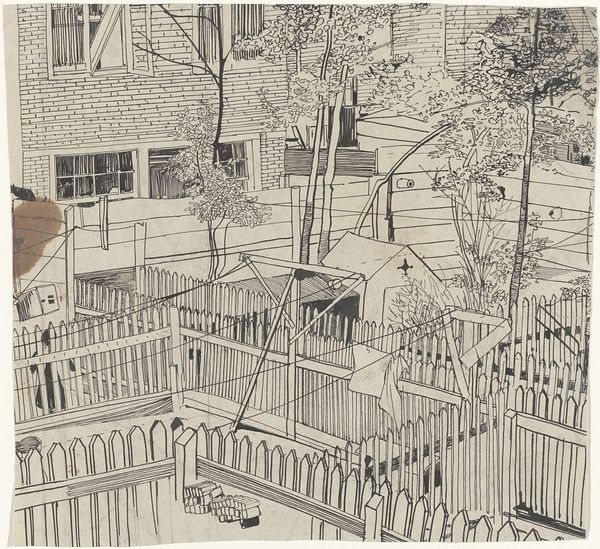 Jennie Lewis made "Houses at Beach No. 2" with graphite on paper. The whole thing is done with very fine lines, almost like she's knitting the image together. Check out the way those lines build up, especially in the trees and the rooftops! You can feel her hand moving back and forth. The texture is incredible, and it gives the whole piece this quiet, contemplative vibe. Even the sky is scribbled! There’s a beautiful rhythm here, as if each mark is a tiny meditation. Look at the fence in the foreground, how she's carefully rendered each vertical slat. It reminds me a bit of Agnes Martin, but with a bit more domestic charm. The way Lewis builds up the image is a slow reveal; not everything is perfectly clear, but that’s part of its appeal. This drawing embraces a certain kind of quiet ambiguity.
