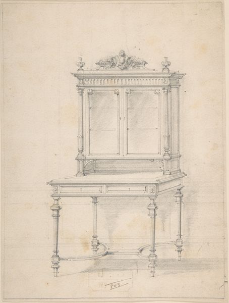 This lithograph presents us with a design for furniture, showcasing a cabinet and table in the Louis XII style. The pointed arches, quatrefoils, and finials draw directly from Gothic architecture, a style associated with spiritual aspiration and medieval craftsmanship. These motifs, prevalent in cathedrals and religious art, evoke a sense of grandeur and divine order. Consider how the pointed arch, initially a structural solution, became a symbol of reaching towards the heavens, a visual echo of humanity's spiritual yearning. We see similar vertical aspirations in the obelisks of ancient Egypt and the spires of Renaissance churches. The resurgence of Gothic elements here speaks to a cyclical return to historical forms, reflecting a collective memory that associates these shapes with authority, elegance, and perhaps even a longing for a perceived golden age. This neo-Gothic revival reveals how architectural symbols evolve, carrying cultural and emotional weight across centuries.