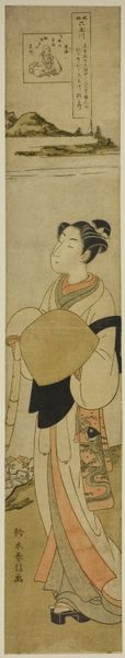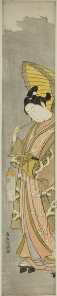 "The Waitress Osen of the Kagiya teahouse Carrying a Cup of Tea" was created by Suzuki Harunobu in the 18th century, using woodblock print techniques. This print captures a fleeting moment, yet it speaks volumes about the social fabric of Edo-period Japan. Osen, the waitress, becomes a symbol of the intersection of labor, beauty, and consumer culture. Harunobu elevates her to an almost iconic status within the floating world of urban pleasure. The choice to depict Osen, a working woman, challenges traditional representations of women in art, which often focused on aristocratic or idealized figures. Her image reflects the growing visibility and importance of women in the service industry, whose labor supported the vibrant teahouse culture. Osen's poised demeanor as she carries the tea invites us to consider the intimate rituals of hospitality and exchange that define social interactions. In capturing the dignity and grace of a working woman, Harunobu offers a glimpse into the everyday lives of those who shaped the cultural landscape of their time.