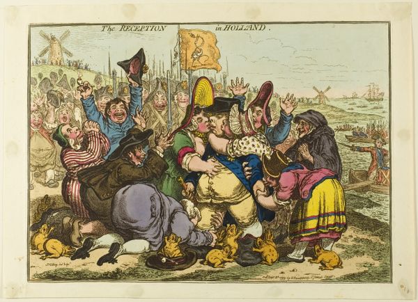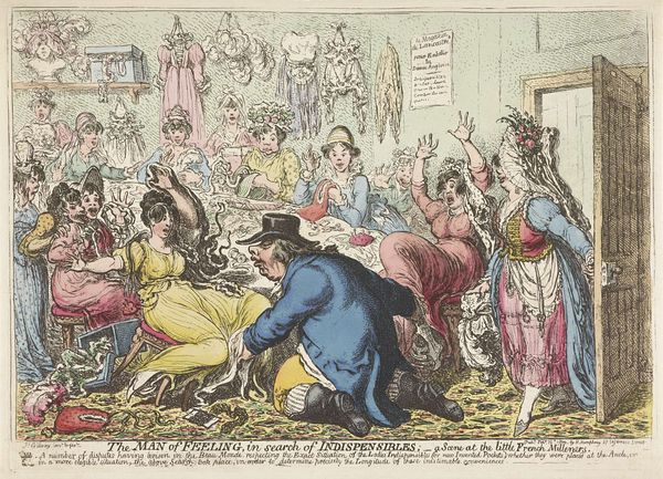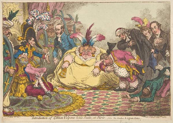 James Gillray created this hand-colored etching in England, likely in 1806. The print satirizes the Whig party's attempt to form a coalition government, which the artist ridicules as a farcical effort to appear dignified. Gillray uses caricature to mock the politicians. The exaggerated physical features and chaotic scene suggest incompetence and corruption. The title, "Making Decent," is ironic, highlighting the perceived hypocrisy of the "Broad-Bottomites." The print references the political climate of early 19th-century Britain, a period marked by shifting alliances and public distrust of politicians. Gillray's work reflects the growing power of the press and its role in shaping public opinion. Political prints like this one were widely circulated and debated, reflecting the era’s vibrant culture of political engagement. By consulting period newspapers, pamphlets, and personal papers, we can reconstruct the contexts of the print, and better understand the ongoing dialogue between political actors, popular opinion, and visual representation.