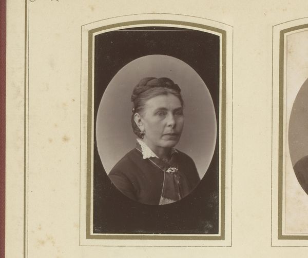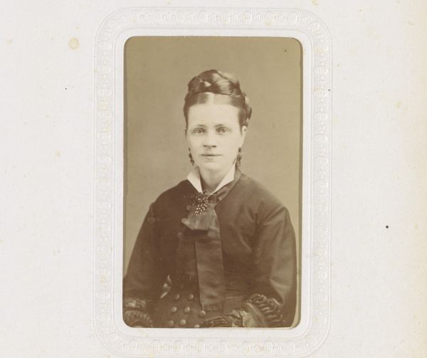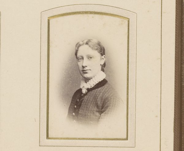 Godfried de Jong created this small portrait of a woman with a medallion using albumen silver print. The picture has a formal quality, emphasized by the subject’s central position and direct gaze. A limited range of sepia tones gives it a subdued feel. The structured arrangement draws attention to the interplay between light and shadow, subtly modeling her features and dress. The lace collar and medallion introduce texture that contrasts with the smooth backdrop, which signifies wealth and status. This carefully constructed image reflects the conventions of portraiture and the desire to capture an ideal representation of the sitter. The image presents a moment frozen in time. Through its composition and details, the photograph engages with broader questions of representation, memory, and identity. Photography invites us to consider the cultural and social values embedded within.