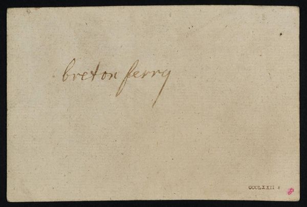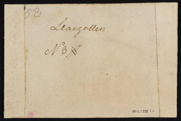 Curator: Looking at this aged paper, I'm reminded of old maps and letters—it feels quite intimate, doesn't it? Editor: It’s unassuming, almost blank, but its potential is intriguing. Like a page waiting for its story. Curator: It's listed in the Tate Collections as "[inscriptions not by Turner]" by Philip James De Loutherbourg. Editor: Those handwritten numerals—they give it such a specific historical weight. What story were they marking? Curator: That's the mystery, isn't it? Without knowing their intent, we're left to create our own narrative around these markings. Editor: Absolutely, its emptiness lets the imagination run wild, doesn't it? I feel like I could project anything onto it. Curator: Perhaps that’s the point, it becomes a canvas for our own interpretations and personal associations. Editor: It's a subtle invitation to reflect on absence and what we choose to see in the void.
