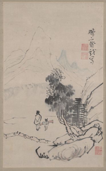 Curator: Looking at "Rapids and Fall of a River," created by Hashimoto Gahō between 1868 and 1912, now held in the Metropolitan Museum of Art, the immediate sensation is one of calm melancholy. Editor: Yes, I agree. It has a hazy, almost dreamlike quality to it. The soft washes of ink create an ethereal effect, almost blurring the boundary between the representational and the abstract. Curator: The artist skillfully employs watercolor and tempera to render a classic scene from the Orientalist tradition—a landscape dominated by cascading water, imposing rocks, and the subtle suggestion of human habitation. What fascinates me is how these landscapes informed colonial ideas of the orient, romanticizing an ‘untouched’ space in relationship to the supposed ‘progress’ in the West. Editor: Absolutely. And Gahō's technique seems deeply rooted in classical East Asian traditions, like a studied meditation on form and negative space. Notice the strategic emptiness? That’s not just about aesthetic balance; it's culturally and spiritually loaded, inviting contemplation. How do you think that contributes to its appeal and its place within art history? Curator: That strategic emptiness also served an aesthetic agenda; it reaffirmed an essentialist reading of Asian cultures by contemporary Western viewers. It positions the East as meditative, spiritual and ancient, not necessarily considering its dynamic interplay of history and modernity. The emphasis becomes less about reflecting Japanese society's multifaceted development during this period and more about reinforcing a constructed, palatable Orientalism for consumption. Editor: Right, that act of 'consumption' is really the hinge on which we can discuss the power dynamics. What's compelling, and complex, about "Rapids and Fall of a River" is precisely this interplay: its rootedness in traditional techniques but, too, its capacity for representing the exoticism which was a dominant lens through which it was appreciated. It becomes not only a work of art but a case study for broader critical inquiry into identity and cultural politics. Curator: Precisely. It reminds us that engaging with art demands a continual process of interrogation, constantly challenging preconceived notions about value and representation. Editor: I completely agree. This piece provides rich ground for understanding not just aesthetic beauty, but also art's potent role in shaping and reflecting societal biases.