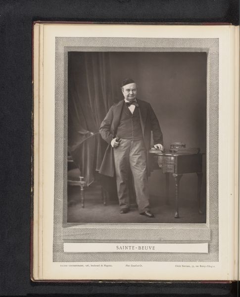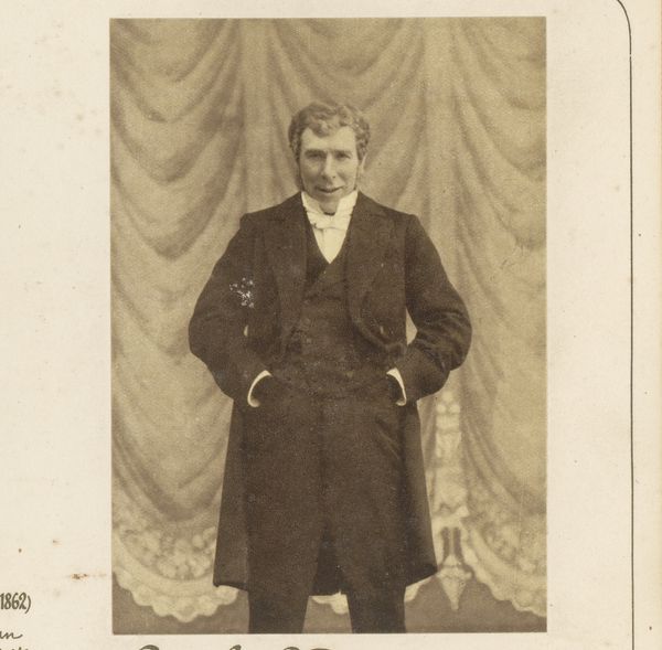 This is a photograph, its creator currently unknown, depicting Alexandre-Frédéric Febvre in costume. The sepia tones give the image a classical feel, the texture of the paper adding depth and a sense of history. Note how the composition directs our gaze—Febvre’s stance, framed by a table on one side and a chair on the other, creates a balanced yet dynamic visual field. The light, though diffuse, catches the details of his clothing and the props, drawing out textures and patterns. Consider the semiotics at play. Febvre’s theatrical garb signifies a role, a character external to his own persona. The objects around him—the basket of wine, the extinguished candle— hint at themes of revelry and its aftermath. These elements coalesce, prompting questions about representation and identity. The balance achieved through composition underscores that this photograph functions as more than a mere record. It becomes a tableau, an exercise in constructing and conveying meaning. The interplay between the formal structure and the symbolic content transforms a portrait into a cultural artifact, prompting continual reevaluation.