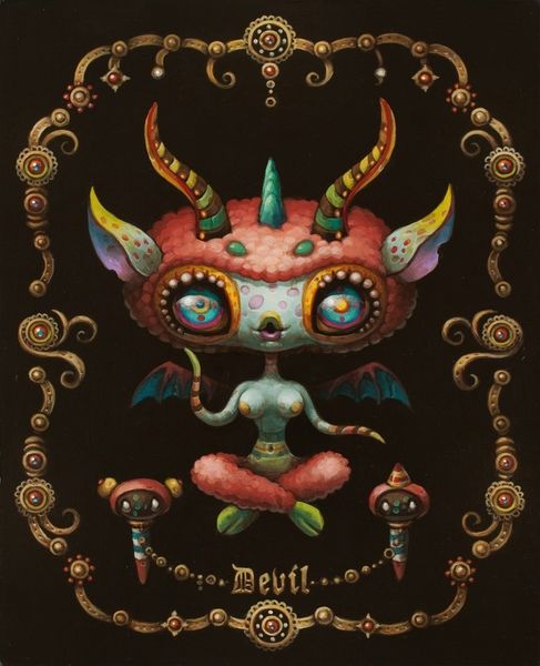 Editor: Looking at "Gate Keeper" by Yoko d'Holbachie, I’m struck by the contrast between the cute, almost cartoonish figure and the slightly unsettling imagery – like the third eye and the weeping heart. What do you see in this piece from a historical and cultural perspective? Curator: This piece resonates with a contemporary fascination with both fantasy and the grotesque. D'Holbachie is clearly tapping into a market and a cultural moment where the monstrous and the adorable are not mutually exclusive. This tension can be read as a commentary on our anxieties around innocence and corruption in modern society. Consider how the work is presented and received, likely online, where such imagery thrives. Do you think that affects its interpretation? Editor: Definitely! Seeing it circulate online gives it this meme-like quality, which sort of normalizes the darker aspects. But how do you think the artist’s choice of “pop surrealism” plays into this reception? Curator: "Pop surrealism" provides a palatable framework for the audience. The "pop" element makes it easily accessible, masking the potentially challenging themes beneath. It's important to consider the art market implications too. Are galleries pushing artists in this direction because it sells, therefore perpetuating a visual cycle? Editor: That’s a fascinating point – the cycle of supply and demand in the art world. It makes you wonder how much of the darkness is intentional social critique, and how much is tailored for an audience already primed for it. I definitely appreciate how that market pressure you describe shapes the direction of art and its meaning. Thanks for that insightful breakdown. Curator: It highlights how cultural trends can become intertwined with art creation and perception. There's a lot more here to unpack as we reflect on how the visual and societal norms shape and are shaped by artists and institutions.