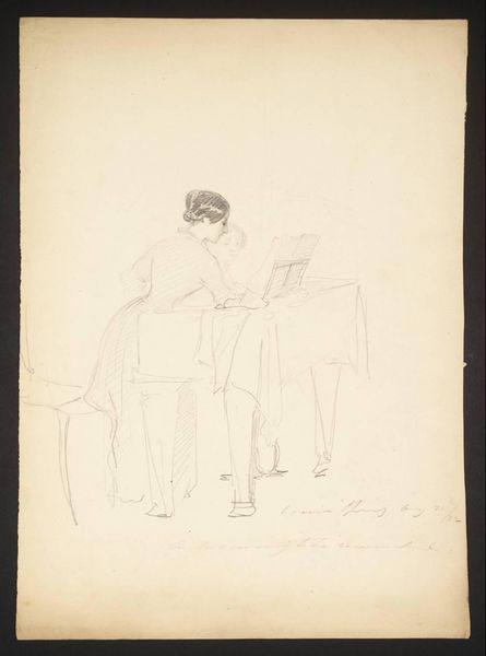 Gustav Schraegle’s pencil drawing presents a woman seated at a sewing machine. The composition, with its delicate lines, conveys a sense of quiet domesticity, yet hints at underlying complexities. The artist uses a network of light strokes to map out the scene. Notice how the recurring circular forms—the wheel of the sewing machine, the woman's head—create a rhythmic visual structure. This repetition not only unifies the composition but also invites us to consider the cyclical nature of labor and domestic life. The drawing challenges fixed meanings by destabilizing traditional representations of women. Instead of portraying her as an idealized figure, Schraegle captures a moment of everyday existence. This shift reflects broader philosophical concerns about the value of women's work and the construction of gender roles in modern society. The sketch invites us to reflect on the interplay between the artist's mark, cultural context, and our own interpretations.