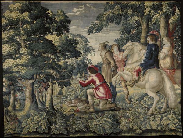 This tapestry, "The Harvest," was woven by Urbanus Leyniers in the early 18th century. It's made of wool and silk, materials that lend themselves beautifully to intricate detail. Look closely, and you'll notice the incredible texture achieved through weaving. The wool gives a sense of depth and richness, while the silk adds highlights, particularly in the figures’ clothing and the sky. The process of creating a tapestry like this was incredibly labor-intensive, requiring skilled artisans to painstakingly interlace threads on a loom. Each color was carefully chosen and placed to create the final image. This wasn’t just a decorative object; it was a statement of wealth and status. Tapestries like "The Harvest" were often commissioned by wealthy families to adorn their homes, showcasing not only their taste but also their economic power. The scene itself depicts an idealized view of rural life, masking the hard labor and social inequalities inherent in agricultural production. Understanding the materials and processes behind this tapestry allows us to see it not just as a pretty picture, but as a complex object embedded in its social and economic context.