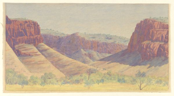Editor: This is Ferdinand Hodler's "The Gantrisch," painted in 1898. It's an oil painting that immediately strikes me as a study in contrasts: the soft, rolling hills in the foreground against the jagged, almost brutal peaks of the mountains. What do you see in this piece, especially considering its historical context? Curator: I see Hodler engaging with the burgeoning Swiss national identity through landscape. Consider how the late 19th century witnessed a rise in nationalism across Europe. Landscape painting wasn't just about pretty scenery; it became a powerful tool to define and celebrate the unique characteristics of a nation. This idealized view helped unify people through a shared vision. Notice the scale: Hodler isn’t just showing us a mountain; he’s giving us a monumental symbol of Switzerland. Editor: So, the landscape itself becomes a symbol? I hadn’t considered it that way. How did exhibiting this piece shape public perception? Curator: Exactly. Works like these reinforced the image of Switzerland as a land of natural beauty, strength, and stability. Museums and exhibitions played a crucial role in disseminating this imagery, making it accessible to a wide audience and shaping national consciousness. Think about the growing tourism industry at the time. Paintings like "The Gantrisch" likely encouraged people to visit and experience the 'authentic' Switzerland represented in the art. The repeated motifs in the composition also create a sense of rhythmic order, contributing to this idea of national stability. Editor: That’s fascinating. I always looked at landscape paintings for their aesthetic appeal, but now I see they played a bigger role in shaping how people viewed their own country. Curator: Absolutely! Hodler's "The Gantrisch" beautifully shows how art intertwines with social and political narratives. It’s a reminder that what seems like a simple landscape can be deeply embedded in the construction of national identity. Editor: I’ll definitely look at landscape paintings differently now!