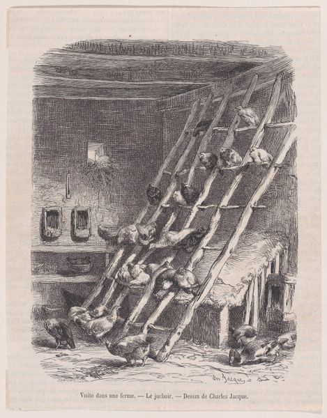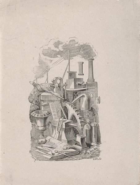 Curator: Joseph Pennell’s “Making Observations,” from around the 19th century, presents us with a look inside what seems to be an astronomer’s or a photographer's studio, rendered in ink on paper. What catches your eye? Editor: The sheer mass of that primary machine dominating the room gives an aura of power and mystery. You immediately sense the importance of the work conducted here. It is a space seemingly dedicated to unveiling hidden truths. Curator: Absolutely. The visible tools here speak volumes about 19th-century scientific or artistic production, right? There are several stands, optical tools like the scope in the background... What kind of labor underpinned such activity, from material sourcing to knowledge gathering? Pennell doesn't depict the craftspeople, but the machinery is front and center. Editor: Right, this absence is telling. Who is empowered to conduct this kind of observation and what biases are present in that activity? This scene appears intensely gendered and raced – almost oppressively masculine in its composition. The cool detachment in the depiction, the greyscale palette—it speaks to notions of objective “truth” that are not value-neutral at all. Curator: I would also consider the labor of making the work itself. Look at the different applications of ink to define all these objects. This room’s objects could reflect a cultural moment invested in scientific advancement and maybe photography or telescopic exploration specifically. How would his art and print-making production change if different supplies were used? What decisions would have been possible with different distribution? Editor: Well, think about the context of scientific exploration and imperialism. These tools are complicit in expanding empires and creating taxonomies, you know? Looking through Pennell’s drawing we need to interrogate that impulse. How can the making and interpretation of artwork address inequities related to observation itself? Curator: Those are essential considerations for the study of visual culture in our own time, even centuries later. Thank you for giving us the prompt for critical engagement here today. Editor: Thank you. I find myself re-evaluating this scene, hoping we as observers can also be more responsible to those under our gaze.