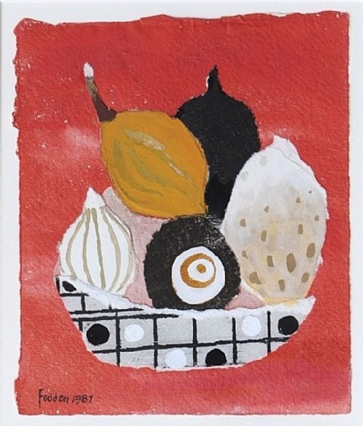 Mary Fedden made this still life in 2009, and what strikes me is how she's not trying to trick you. Look at that confident red table! It's like she laid down the color first and then arranged her objects, each one a little quirky. The brown jug, seashell, feather and stones feel very solid, but the paint is laid on in thin washes, almost like watercolor. See how the red bleeds through, especially around the edges? It creates this fantastic glowing effect. And that feather, floating on the red table, it feels like a thought, a light touch, in the midst of this grounded scene. It reminds me a little of Milton Avery, with its playful shapes and bold colors. There's a lightness here, a sense of joy in the simple act of looking and painting. It’s not about perfection, but about embracing the messy, beautiful process of seeing the world.