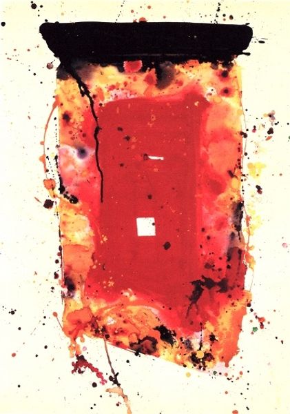 John Dowell made this print, Triangular Fugue III, and it strikes me as a real exploration of mark-making. There's a kind of frenetic energy here, a process of layering and building up images that feels both deliberate and intuitive. I’m drawn to the physicality of the piece, the way the textures play against each other. Dowell's use of color is interesting too – this soft yellow ochre background really makes the vivid reds and greens pop. Look at the central triangle, how it bleeds and pools, creating these unexpected shapes and depths. It’s like he's letting the medium dictate the direction, embracing the happy accidents that come with printmaking. It reminds me a bit of Cy Twombly's work, in the sense that it’s not about representation, but about the pure joy of making marks and creating a visual language that's all its own. It shows us that art can be a conversation, an ongoing exploration of ideas and techniques.